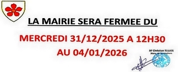 La collecte des bacs noirs (ordures ménagères) sera avancée au mercredi 31 Décembre au lieu du 1er Janvier 2026. Veillez à sortir votre bac noir la veille de collecte.