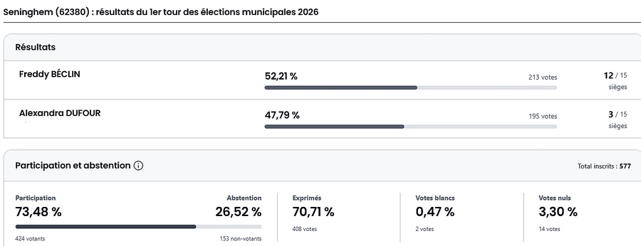 Résultats du scrutin de Seninghem
