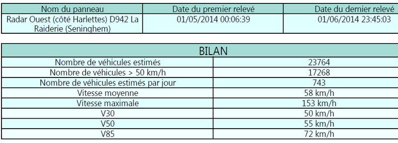 des 2 radars positionnés à la Raiderie, n'a pu prendre en compte les